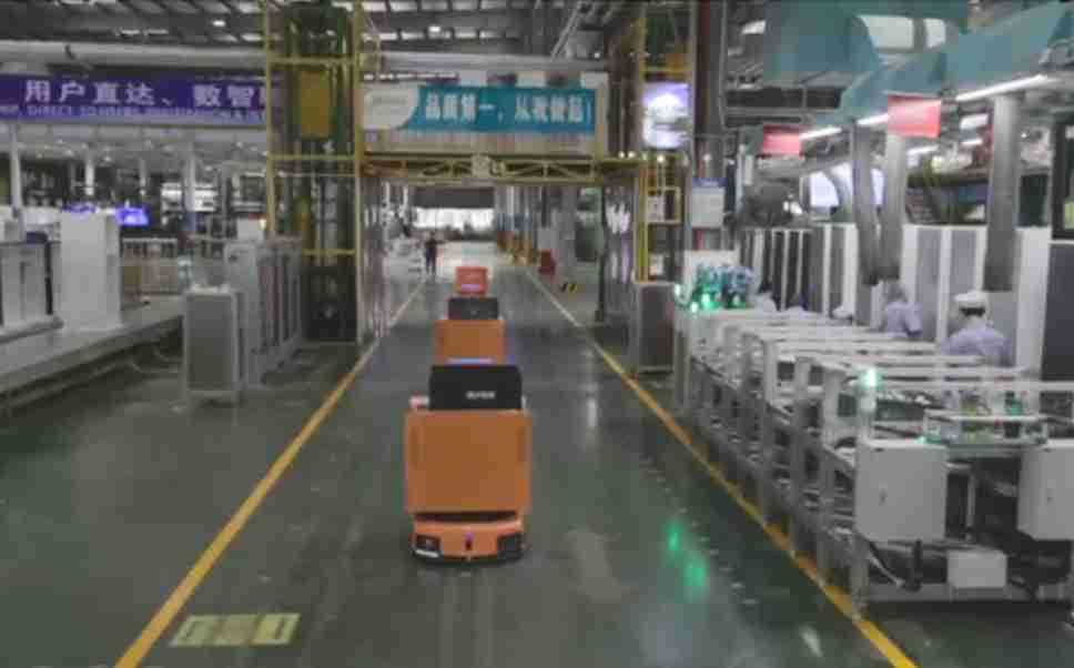 为车载冰箱物流配送打造的智能解决方案,,包含产中物流通过潜伏举升AMR搬运至线边,,产后成品物流智能仓储,,流程包含产中物流智能齐套入库,,,,线边安灯叫料AMR智能配送至线边,,,成品入库、、、出库,,,通过无人堆高车机器人,,,智能仓储管理替代人工作业管理,,,实现更高存储、、、、更高效率、、、更具柔性化的解决方案。。
